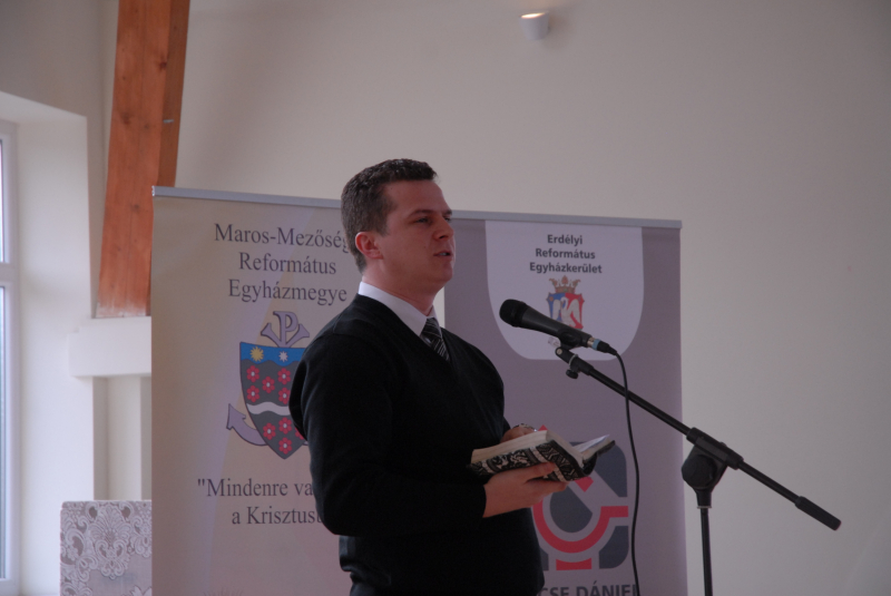 Les Júlia egyházmegyei beosztott lelkész köszöntő szavai után, Csenteri Levente marosvásárhely-meggyesfalvi lelkipásztor tolmácsolta az egybegyűlteknek Isten igéjét. A Ruth 1,16-17 alapján elmondta, hogy a jó házasságban férjnek és feleségnek közös az útja, vállalják egymás családját, „népét”, ugyanaz az Isten vezeti a lépteiket, és talán még a halál sem választja el őket egymástól.
