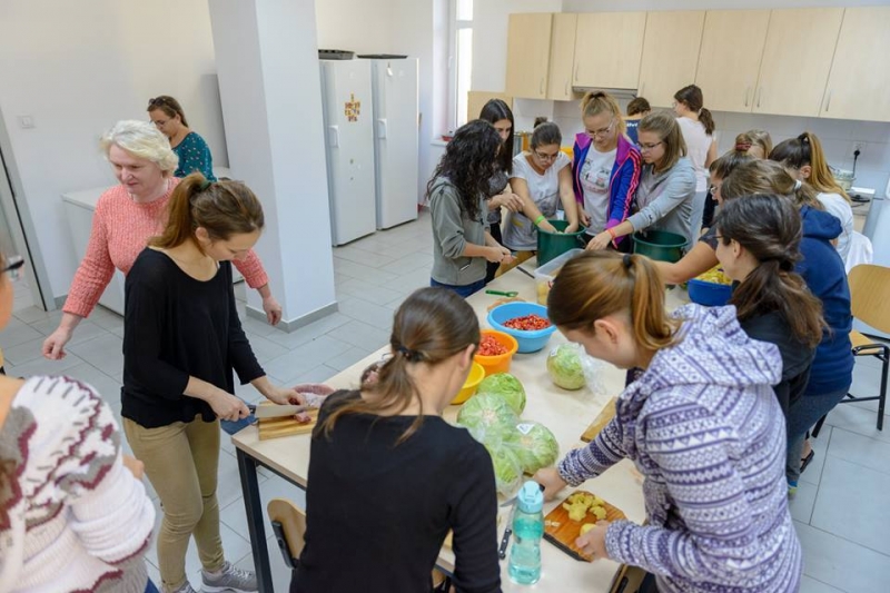 Péntek délután a Kollégium minden emeletéről érkeztek szorgos kezű lányok és munkás fiúk. Míg a lányok alaposan előkészítették az esti gulyás összetevőit, addig a fiúk az udvart csinosították. Almát, diót szedtek, elszáradt faágakat gyűjtöttek, asztalokat, padokat helyeztek ki az udvarra.
