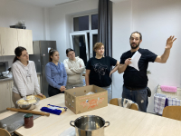 December 12-én, hétfőn este, immár negyedik alkalommal, ünnepi terített asztal várta a Szakkollégium bentlakó közösségét vacsorázni. Mennyei illatok hozták meg a kedvet a finom vacsorához már a délután folyamán, ugyanis közel 30 bentlakó diák, Berke Sándor lelkipásztor-mesterszakács vezetésével, a szakkollégium konyháiban hozzálláttak elkészíteni az igencsak különleges vacsorát. Ez már a második alkalom, hogy Berke Sándor a vendégünk, és irányításával a diákjaink kipróbálhatták a mesterszakácskodás rejtelmeit.